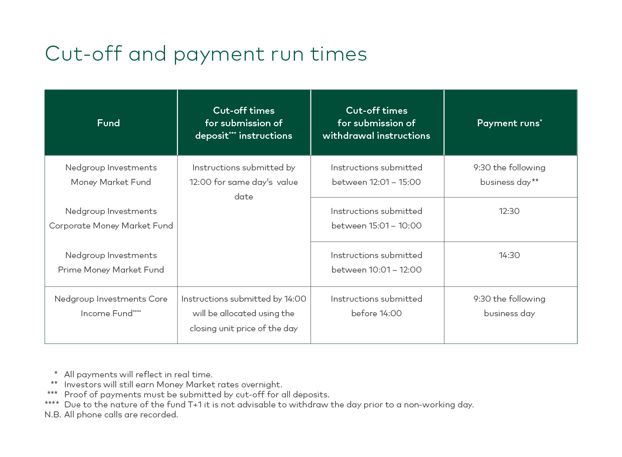 Please note that we also offer the ability to execute instructions with the following transact options upon receipt of the respective mandate/s.