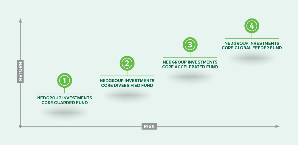 The Nedgroup Investments Core Range consists of three risk-profiled South African balanced portfolios to meet the requirements of investors, whether their investment horizon is short-term (i.e. three years) or long-term (i.e. five years and longer).